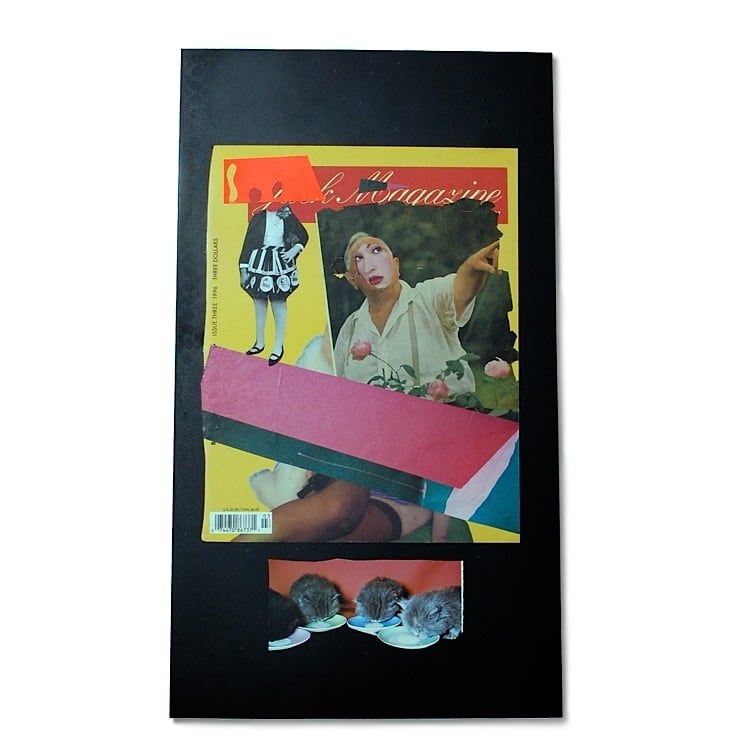"LET OUT [lèt óut]《 他動詞+ 副詞》出して・ぶちまける・終わらせる・解放する"をテーマに、黒いアクリル板をベースに制作したコラージュ作品シリーズ。