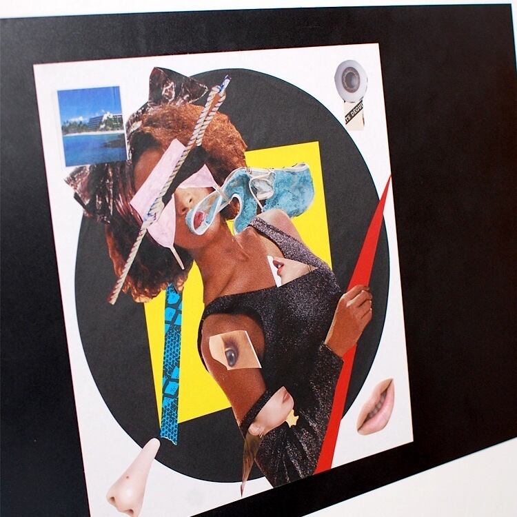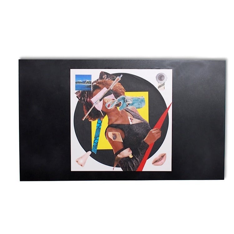 "LET OUT [lèt óut]《 他動詞+ 副詞》出して・ぶちまける・終わらせる・解放する"をテーマに、黒いアクリル板をベースに制作したコラージュ作品シリーズ。